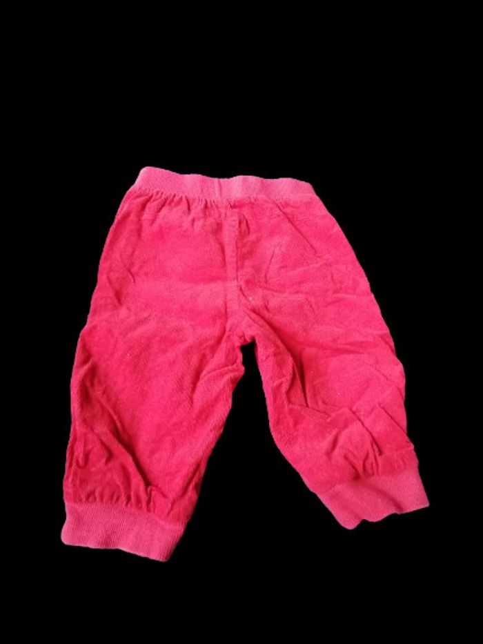 pantalon velours fille ou garçon de couleur rouge , doublé tissu taille élastique , cordon de serrage factice poche ventrale à l'avant , bas des jambes élastique 100% coton de marque U taille 6 mois très bon état