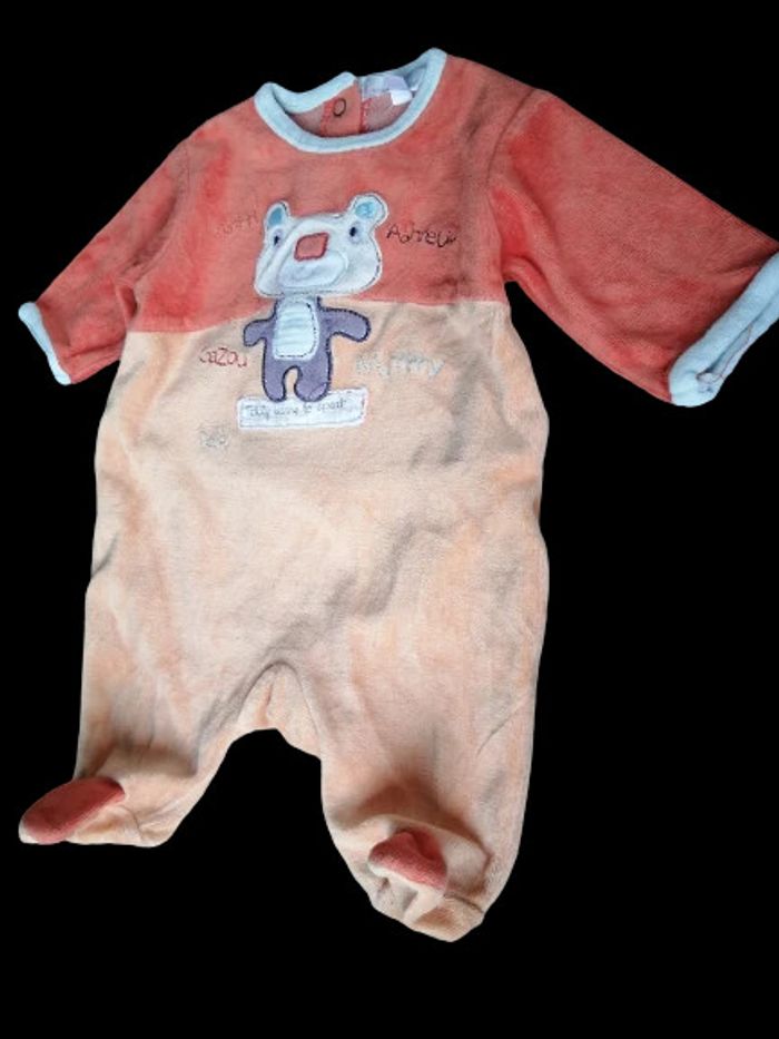 Pyjama dégradé orange, 1 pièce, matière 77% coton 23% polyester, ouverture par boutons pressions à l'arrière, motif ours, marque kitchoun, taille 1 mois fille ou garçon,très bon état #1moislasticouette74360