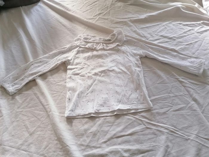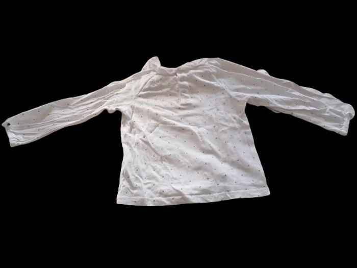 Tee-shirt en coton, de couleur blanc avec motif pois, de taille 18 mois fille , de marque “KIABI” En très bon état. #18moislasticouette74360