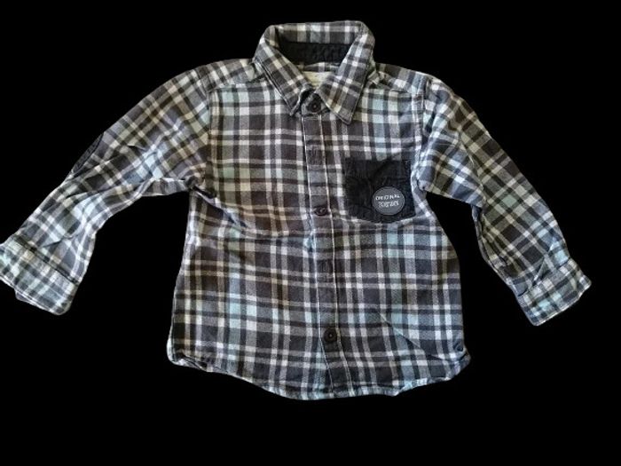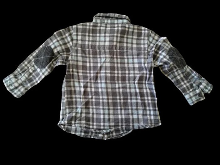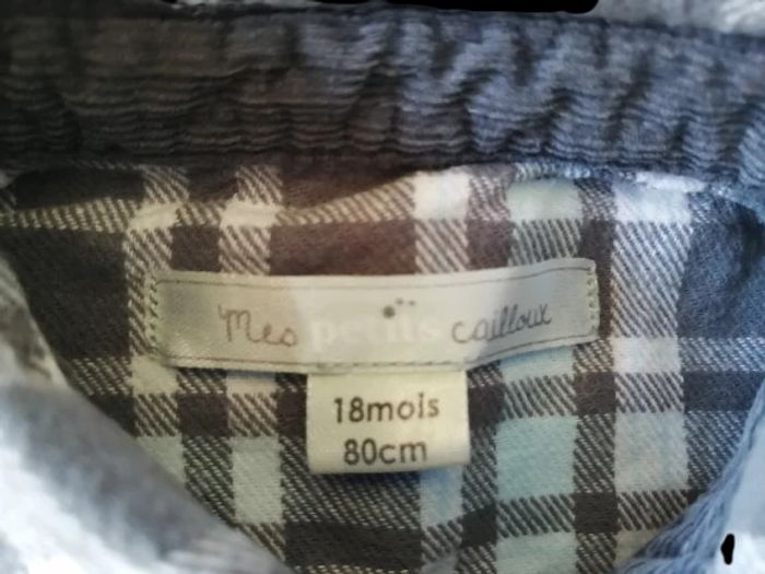 Chemise a carreau grise et blanche avec col , 100% coton, manches longues, petite poche sur le dessus, ouverture à boutons jusqu’en bas, marque mes petits cailloux, taille 18 mois , très bon état #18mlasticouette74360