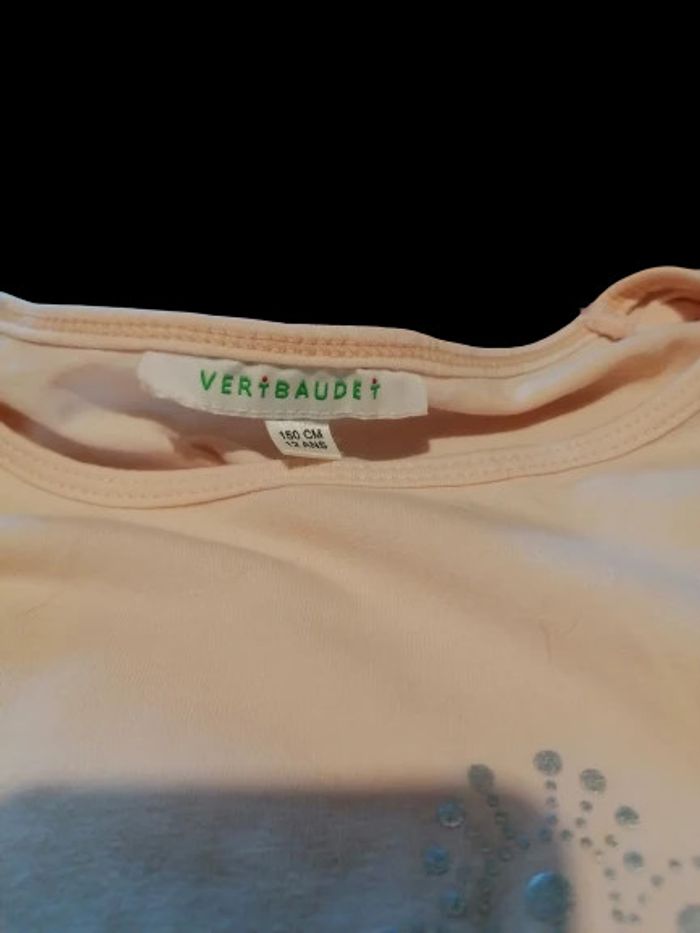 tee shirt rose en coton à manches longues avec motif couronne de marque verbaudet taille 12 ans bon état