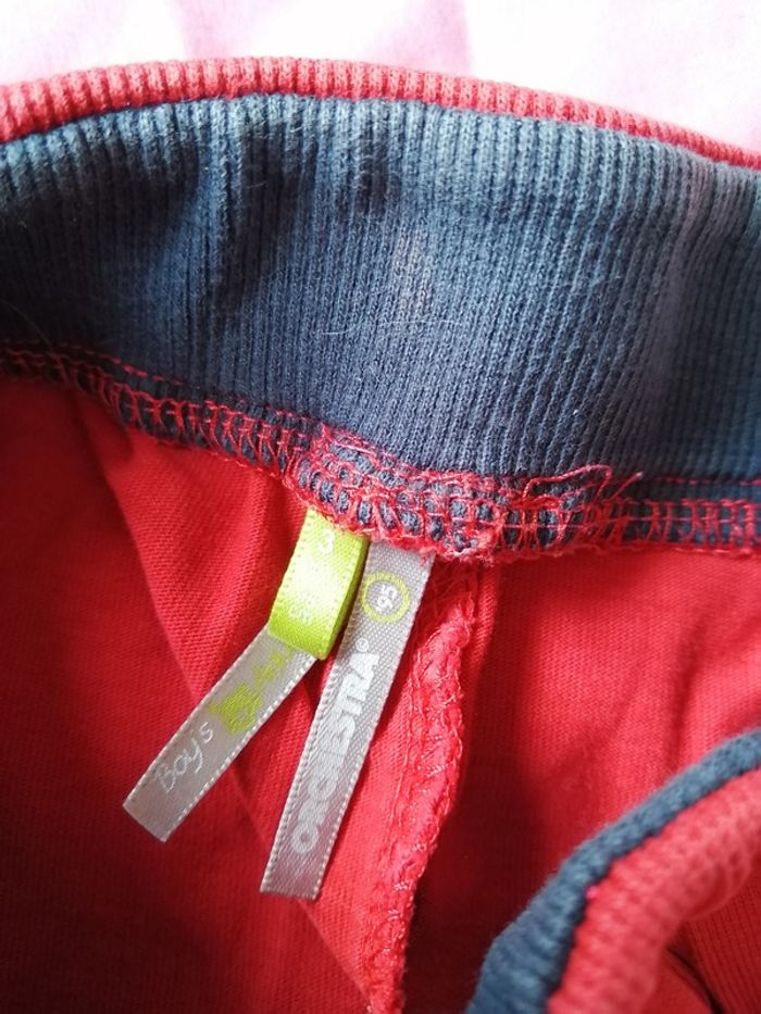 Bermuda rouge, matière 100% coton, inscription sur le devant, taille élastique, avec poches, marque orchestra, taille 3 ans garçon, bon état