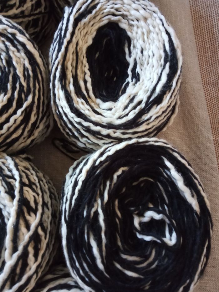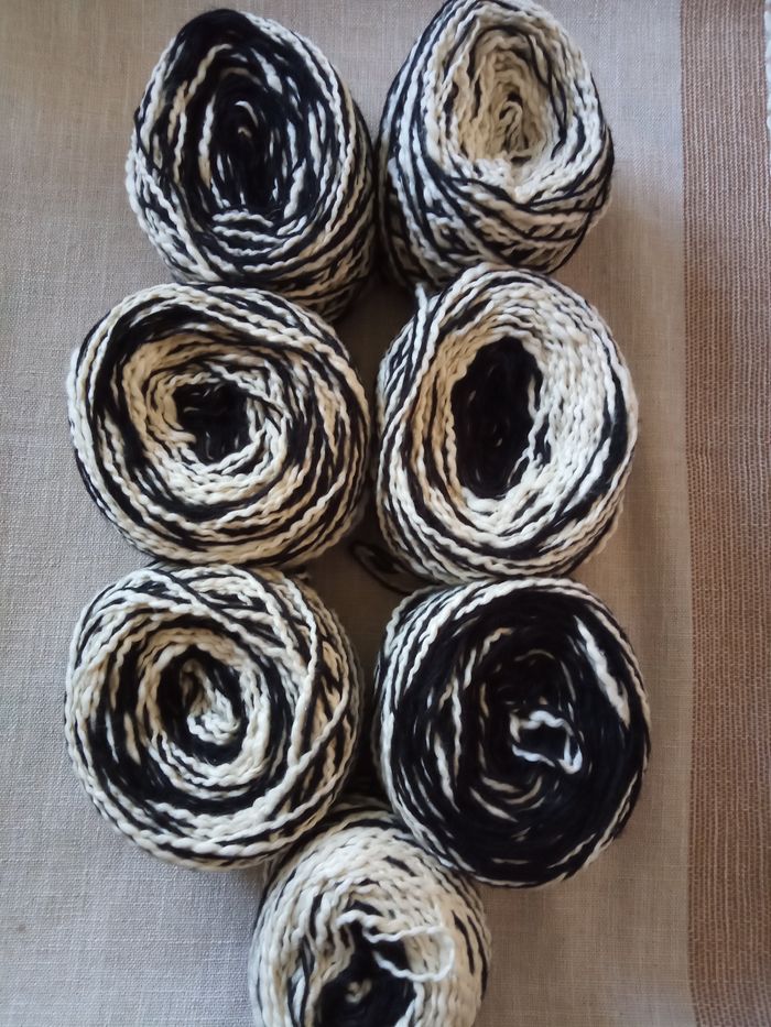 Lot de 7 Pelotes Fantaisie (575g) Couleur: Blanc et Noir 1 fil simple moyen + 1 autre fantaisie plus épais au total 575g Lot en parfait état