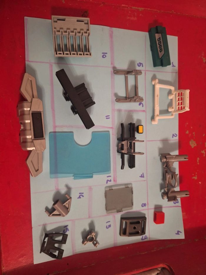 9 support panneau16 pare choc 4x4 top agent 3 lanceur de roquetteLe 7 l'avant du quad voleur 8 , vitre teinté fourgon je pense - Véhicule 5267 -- En 13 c 'est une pièce de trépied appareil photo1 panneau de toit pour les convoyeurs de fonds 5566 9 avant du quad 6879 #zaceci28jouet #zaceci28playmobil