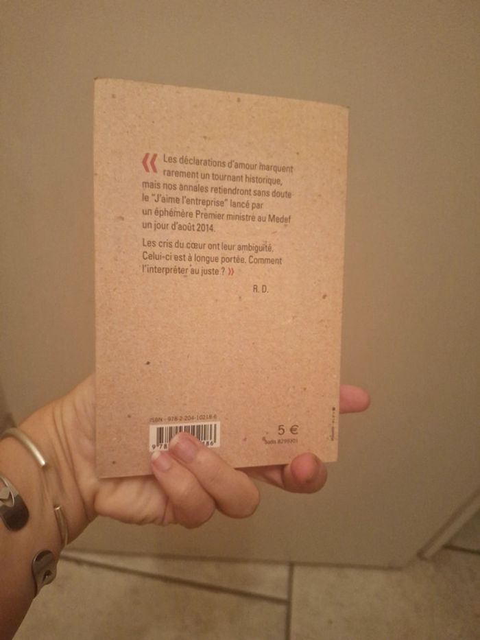 Les déclarations d'amour marquent rarement un tournant historique, mais nos annales retiendront sans doute le "J'aime l'entreprise" lancé par un éphémère Premier ministre au Medef un jour d'août 2014. Les cris du coeur ont leur ambiguïté. Celui-ci est à longue portée. Comment l'interpréter au juste ?" R. D. Sommaire: ["L'EFFUSION","L'INFLATION","LA SUBVERSION","UNE REMEMORATION","LA FASCINATION","L'IMPLOSION","L'ALIENATION L'erreur de calcul régis debray
