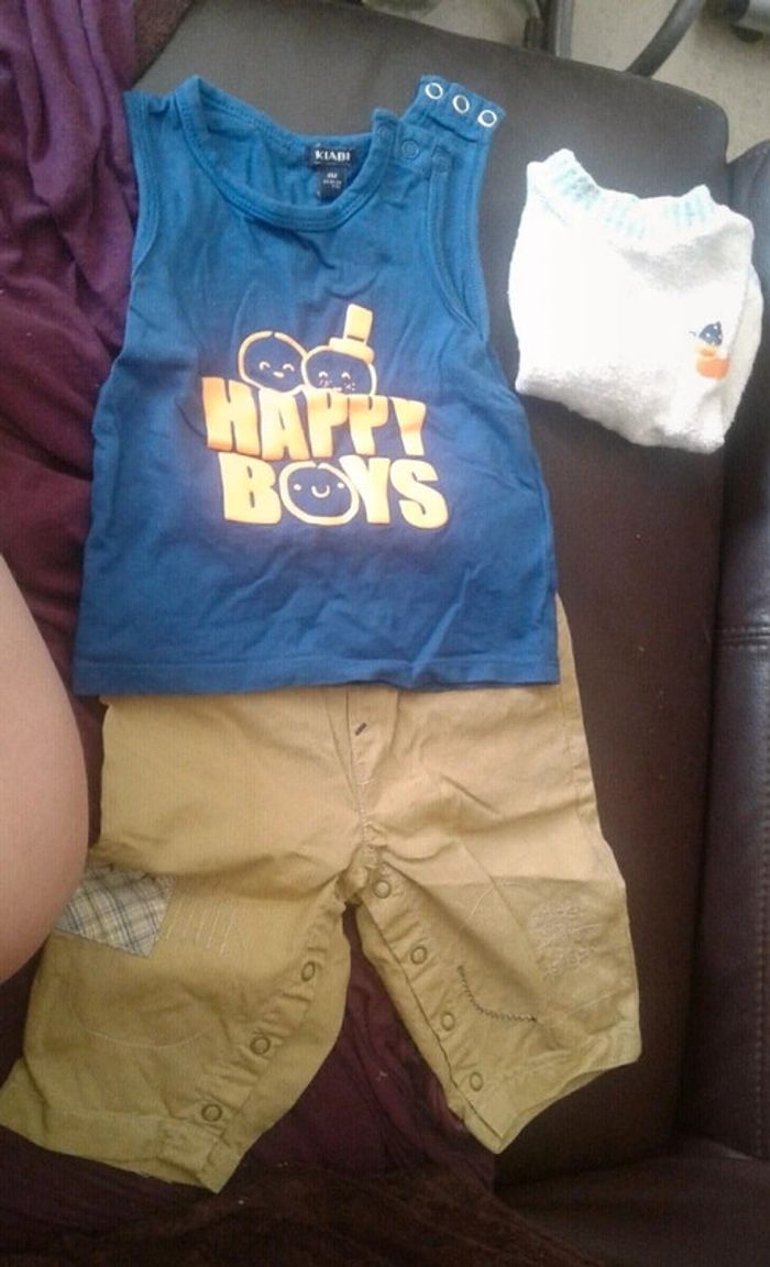 Tshirt happy boys kiabi 6mois tbe Pantalon kaki sergent major 6 mois Offert un petit pull en état satisfaisant #zaceci28e6mois Ensemble pantalon tshirt garçon