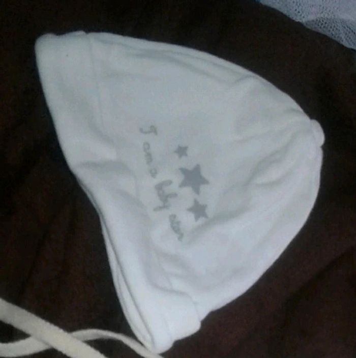 bonnet naissances tissus Blanc et gris etoile Écrit en anglais in am à baby star Je suis un bébé stars #zaceci28naissance #zaceci28e1mois