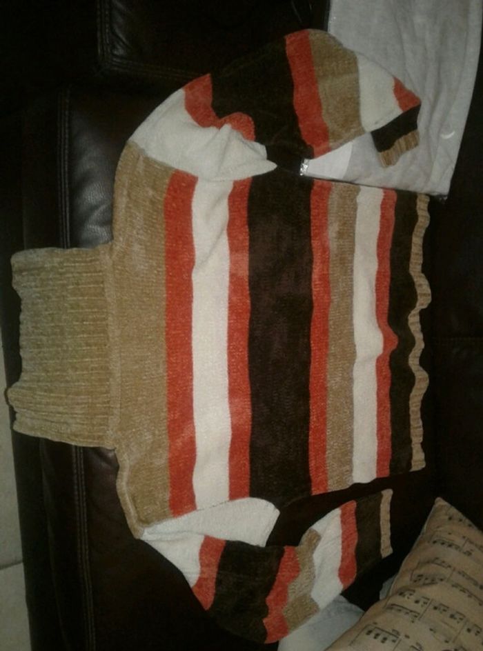 Pull rayures automne maron orange nlanc - photo numéro 1
