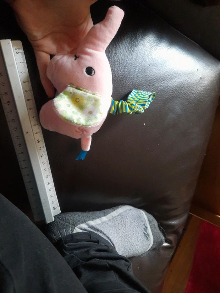 Toute douce #zaceci28doudou Avec attaché pour mobile ou arche Petit grelot dedans Et motif vert