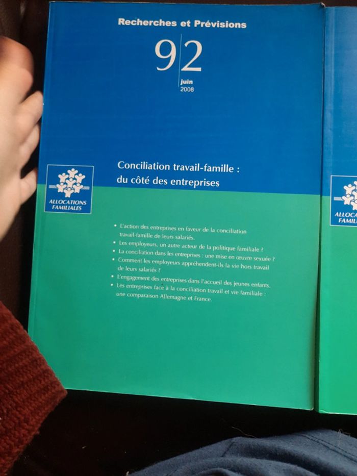 Possible de separer le lot : -Conciliation travail famille du côté des entreprises allocation familiale 92 recherche et prévision Conciliation engagement - recherche et prévision 91 minima sociaux diversité des logiques d'action et des publics. Assistance. Participation état dette rmi disparités local Conciliation des vies familiale professionnelle Utiliser pour mes études idéal