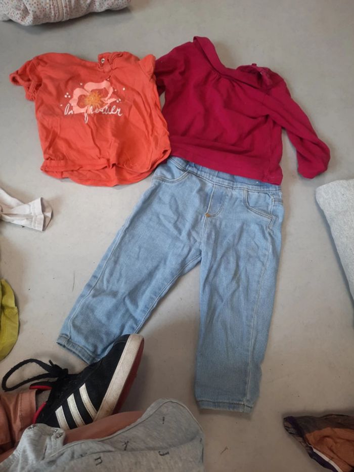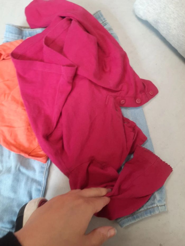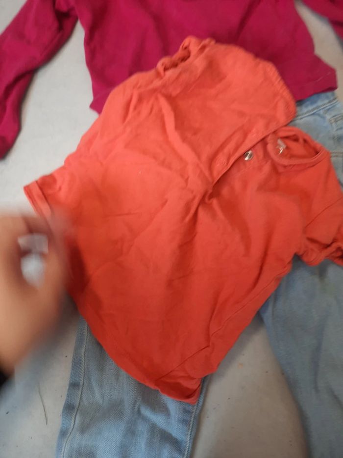 Jean ample simple bleu claire t-shirt manche longue rose violet #zaceci28e1 #zaceci28e18mois Et 1 manche courte