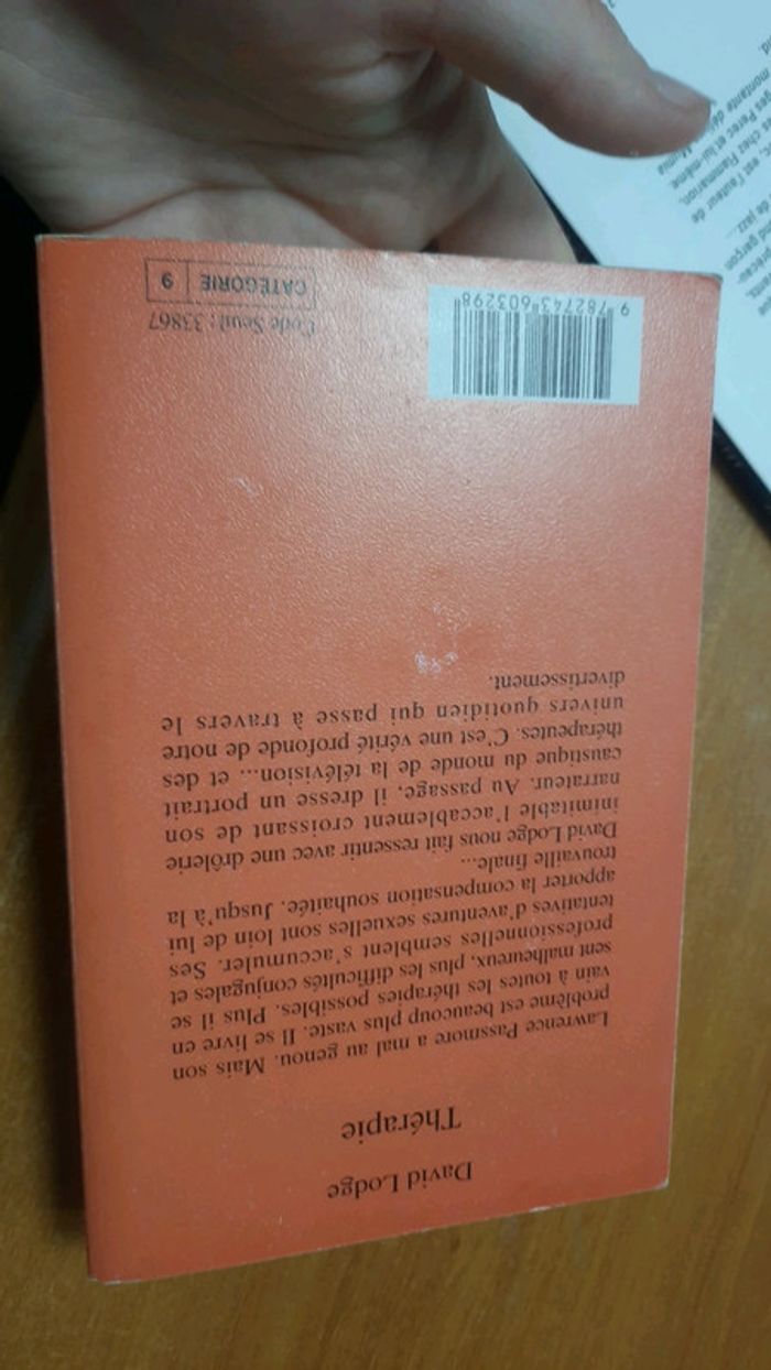 Thérapie David lodge en etat satisfaisant Et l'autre en tres bon etat Jacques légèrement siggrand et sip'tit