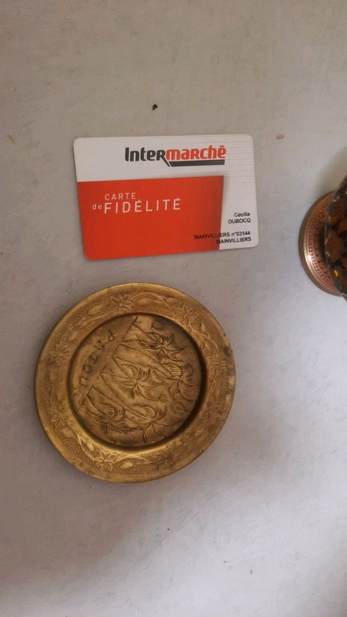 Peu être utiliser comme dîner en fer ou autre je sais pas patou ecrit sur l'assiette avec les palmier La théière est ancienne