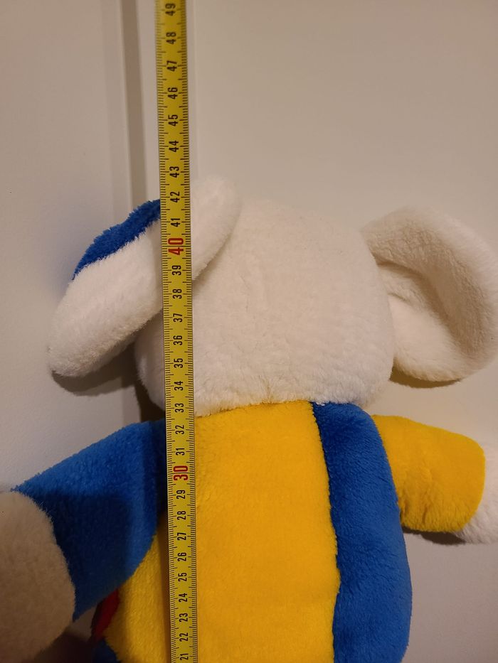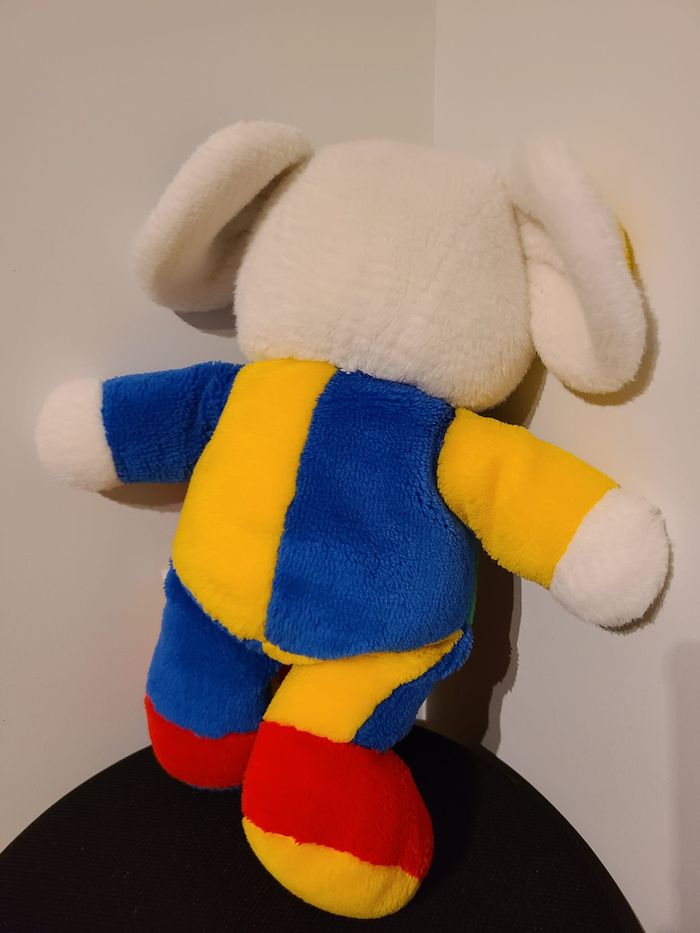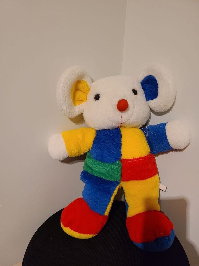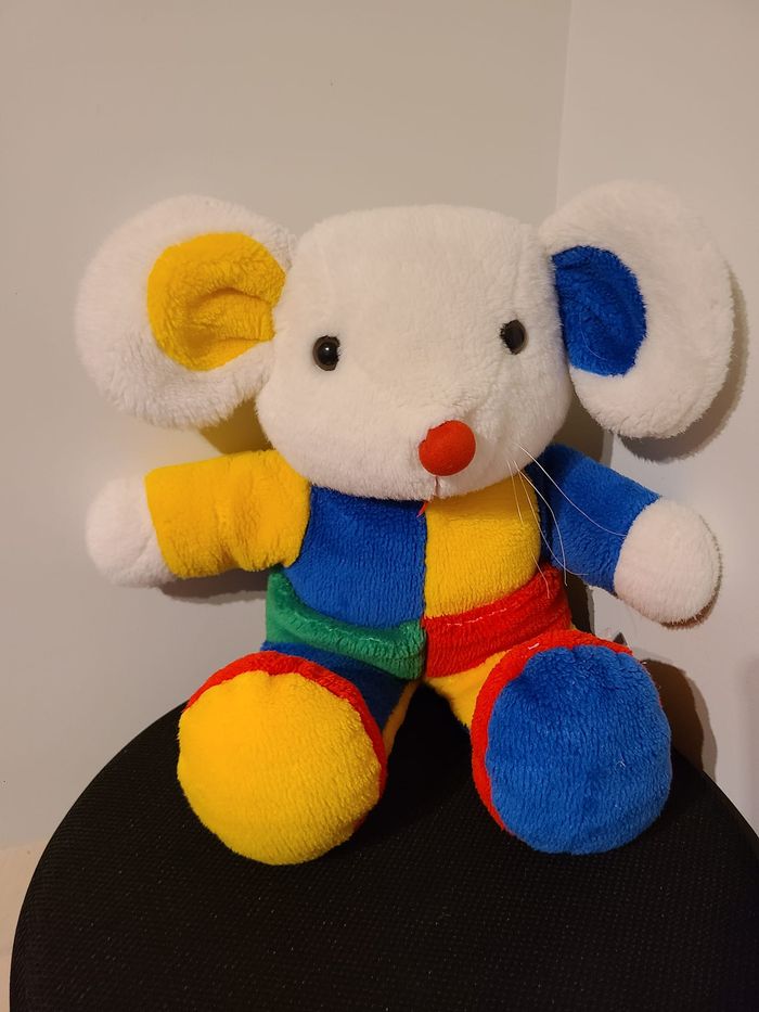 Doudou peluche souris oreille et corp jaune vert rouge bleu 83
