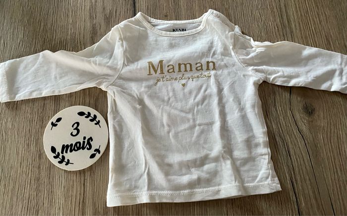 Teeshirt manches longues Kiabi Taille 3 mois En parfait état Maison non fumeur N’hésitez pas à faire des lots pour obtenir des remIses Kiabi