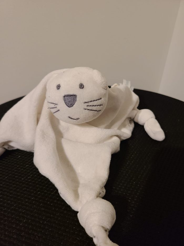 Doudou Chat Bout'chou Monoprix Carré Plat Blanc Étoiles Nœuds Aux Extrémités 83