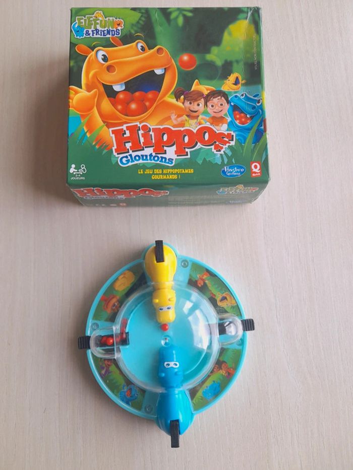Jeu Hippos Gloutons miniatures Présente des traces d'usures sur le jeu (griffes...) et boîte abîmée #delfyned3jeuxdesociete