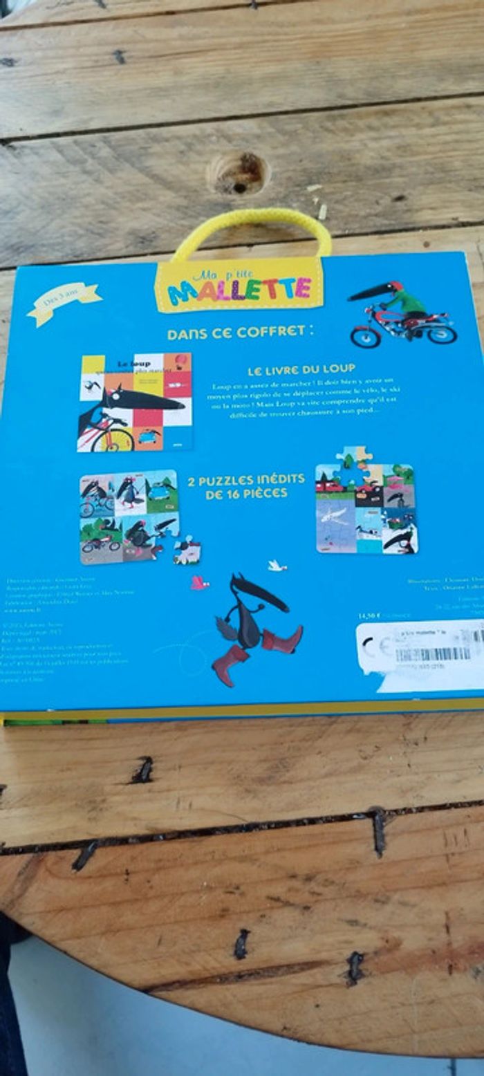 Vend Malette Loup, composé de deux puzzles avec les mois de l'année, et un livre loup qui ne voulait plus marcher. Malette complète en très bon état D'autres produits p'tit loup dans mon dressing n'hésitez pas à faire un lot ☺️🐺