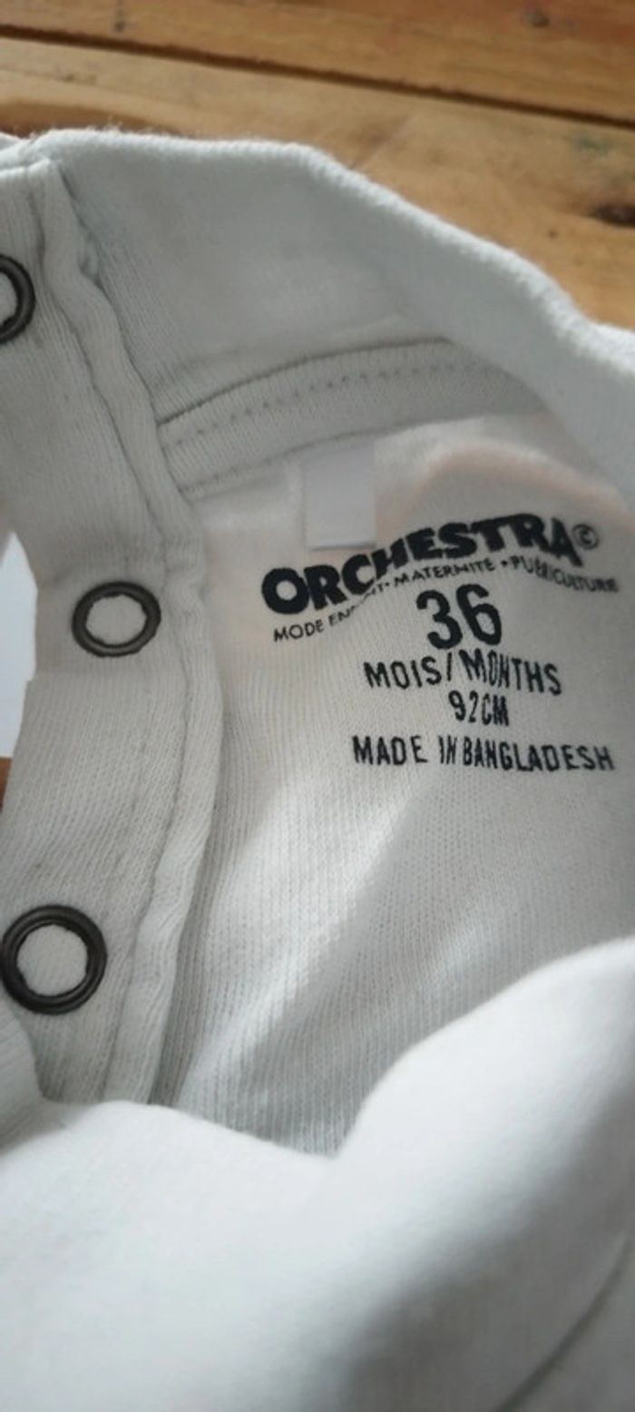 Vend t-shirt manche longue, orchestra, taille 3 ans en très bon état N'hésitez pas, prix de lot disponible