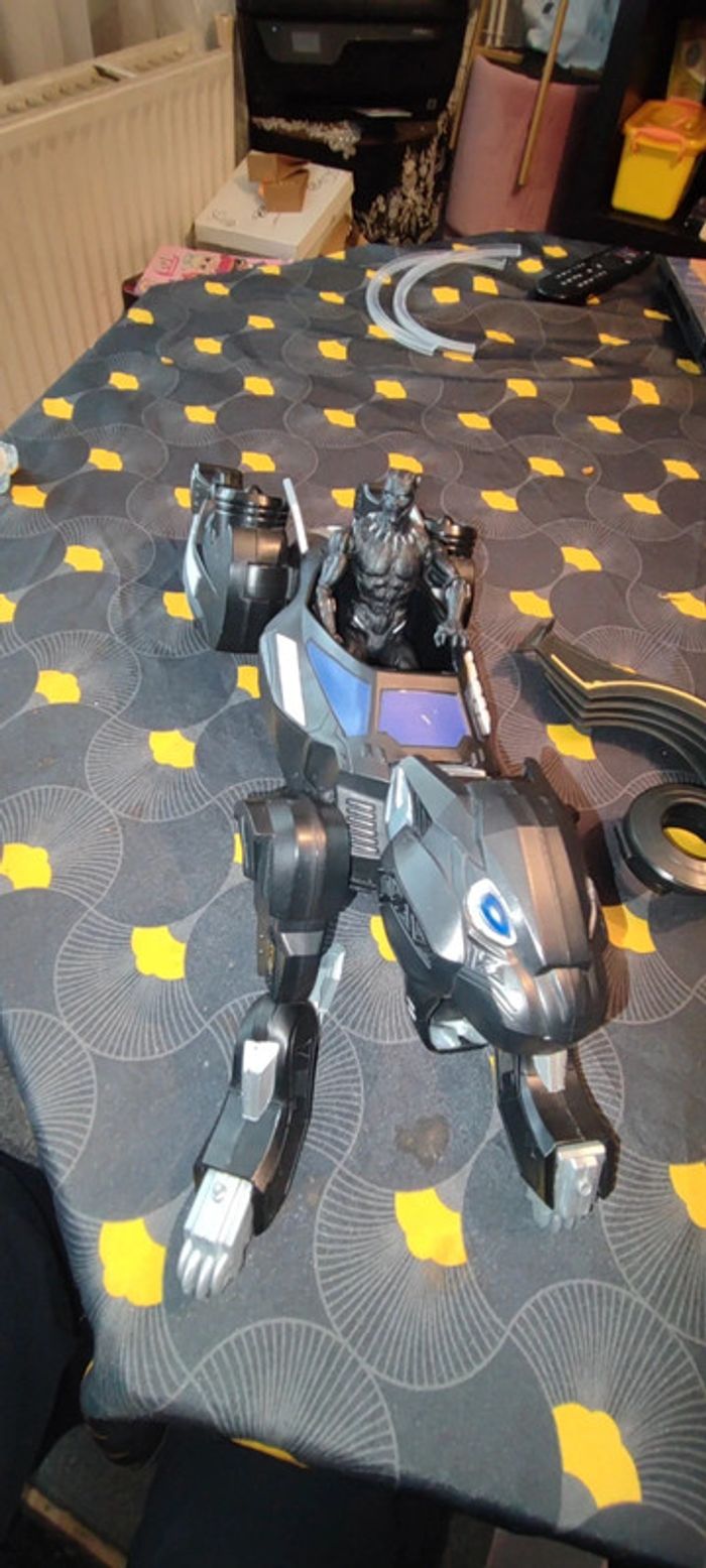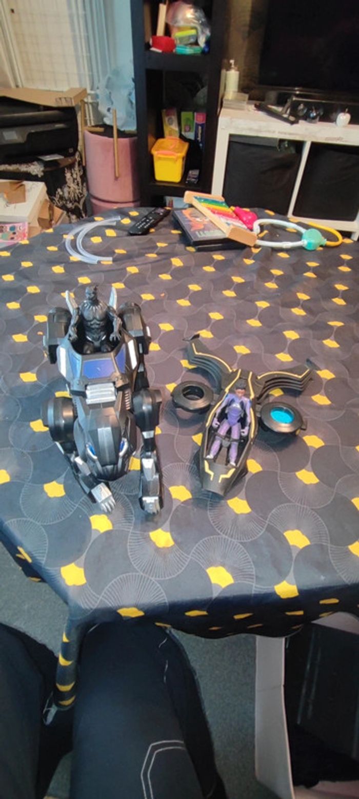 Lots jouet black panthère en parfait état juste pour véhicules de la fille je retrouve plus deuxième missile. Black panthère wakanda forever mon fils a joué 3 fois max.