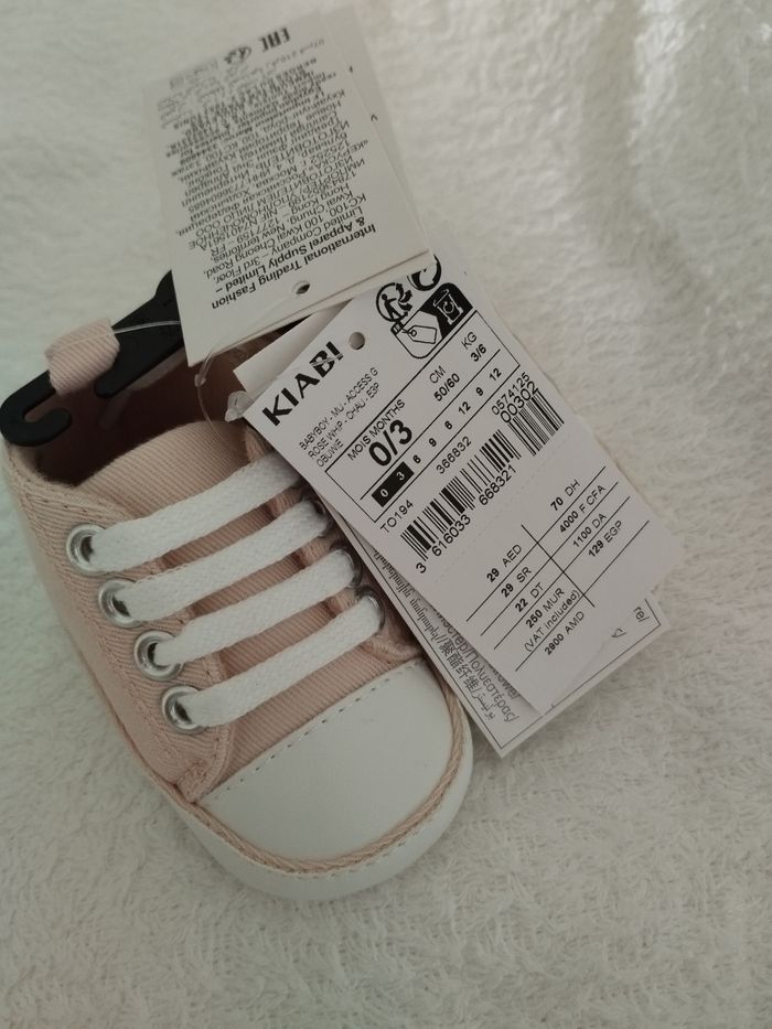 Paire de baskets toute neuve , jamais mises . Très bon état Taille 0-3 mois