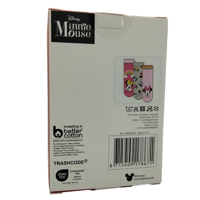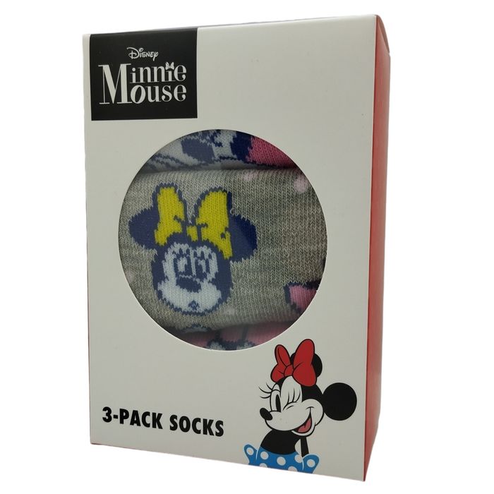 Pack de 3 paires de chaussettes confortables MINNIE MOUSE pour enfant. . Pointure : 27/ 30 . Sexe : Fille . Matière : 69% cotton / 29% polyester / 2% elastane . Lavable en machine jusqu'à 30°C . Ne pas repasser . Ne convient pas au sèche-linge . Article neuf fourni dans sa boîte d'origine . Prix ferme et définitif