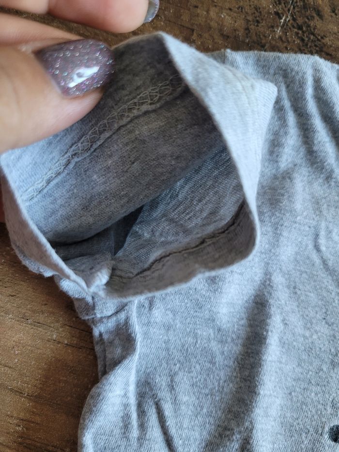 Petit T-shirt Manche court Couleur gris Dessin noir et rouge Taille 12 mois Mi saison Voir tous saison Matière 100% coton