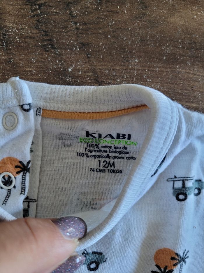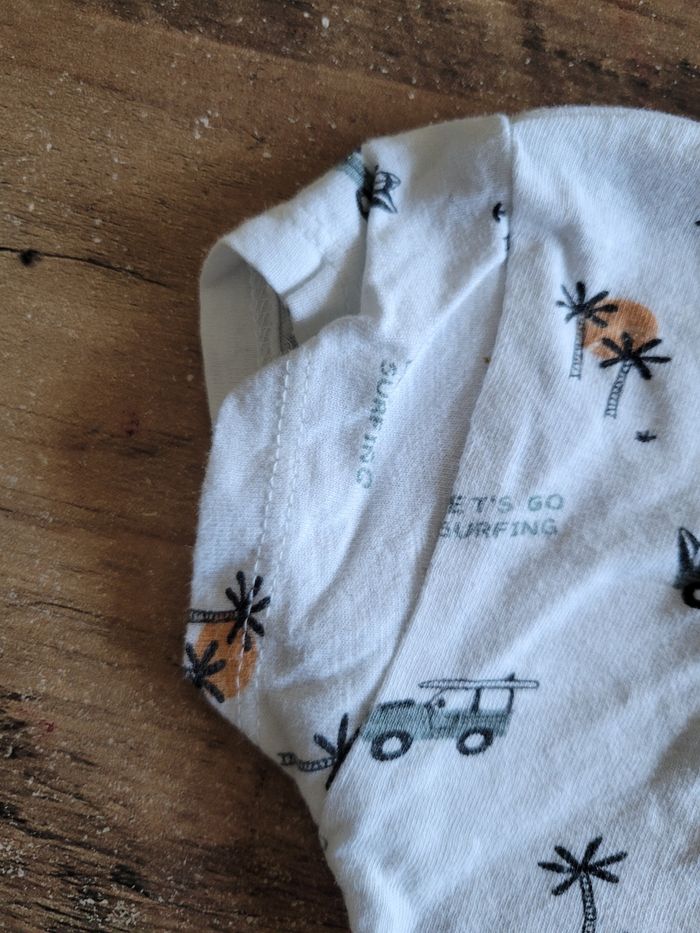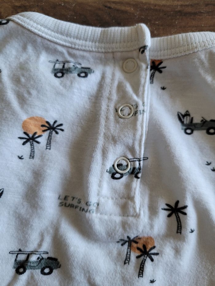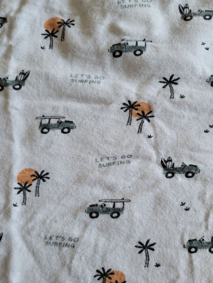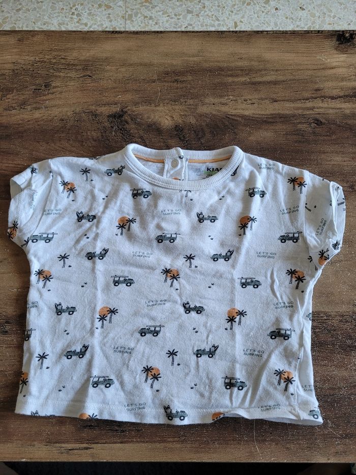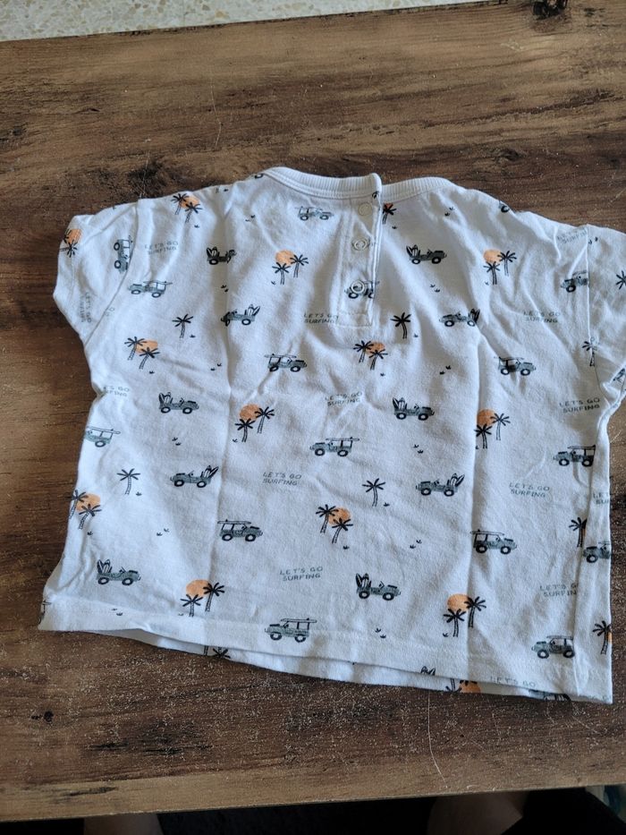 Petit T-shirt Manche court Couleur blanc Dessin voiture palmier Taille 12 mois Mi saison Matière 100% coton Attaché derrière