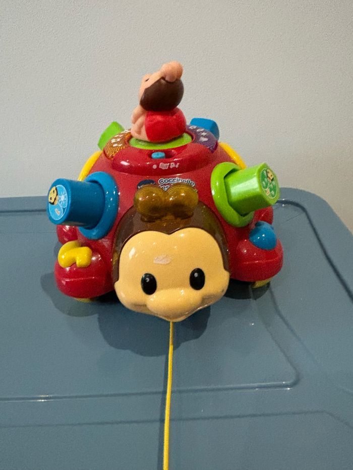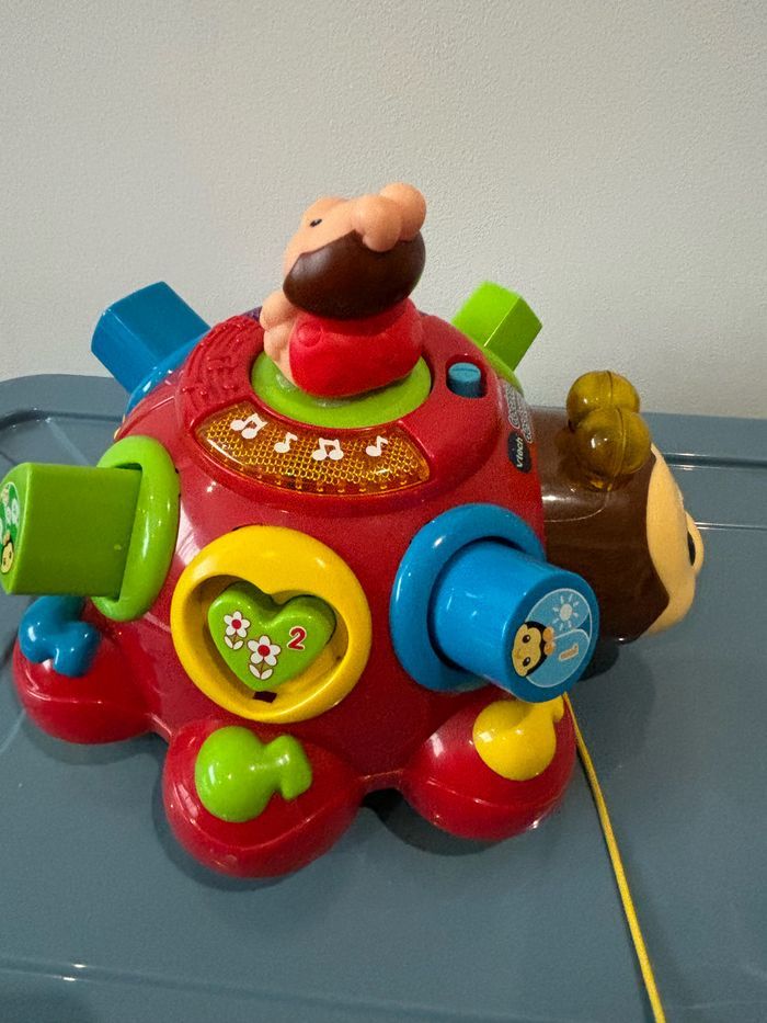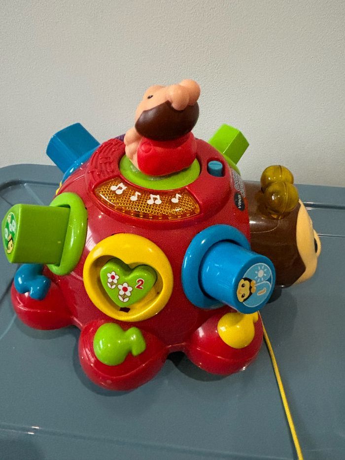 idéal pour les enfants de 12 à 36 mois. Une coccinelle parlante et son bébé pour découvrir les formes ! Quand bébé appuie sur bébé coccinelle, toutes les formes insérées dans la coccinelle sautent pour la plus grande joie de bébé ! 6 formes colorées à encastrer pour apprendre les formes, les chiffres et le vocabulaire de la nature. En promenant la coccinelle grâce à son cordon, bébé fait tourner sur lui-même bébé coccinelle et déclenche des mélodies. 2 modes : découverte et musical. 2 chansons et 12 mélodies. Il Manque 2 formes.