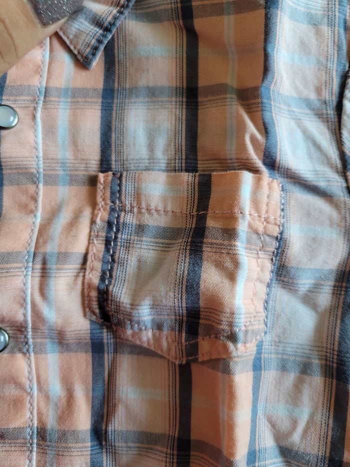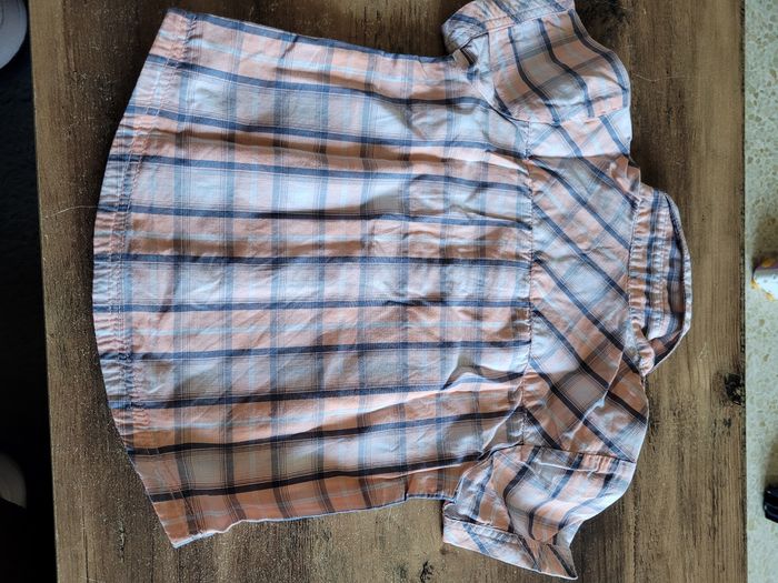 Petit chemise Manche court Couleur orange Très clair gris et blanc Attaché devant Taille 12 mois Mi saison Voir tous saison Matière 100% coton