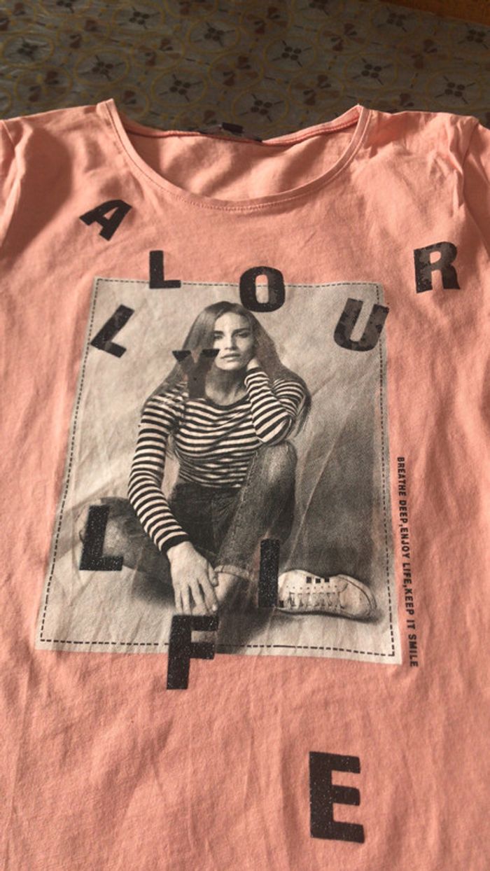 t-shirt de couleur saumon avec motifs manches courtes Marque Kiabi Taille 16 ans