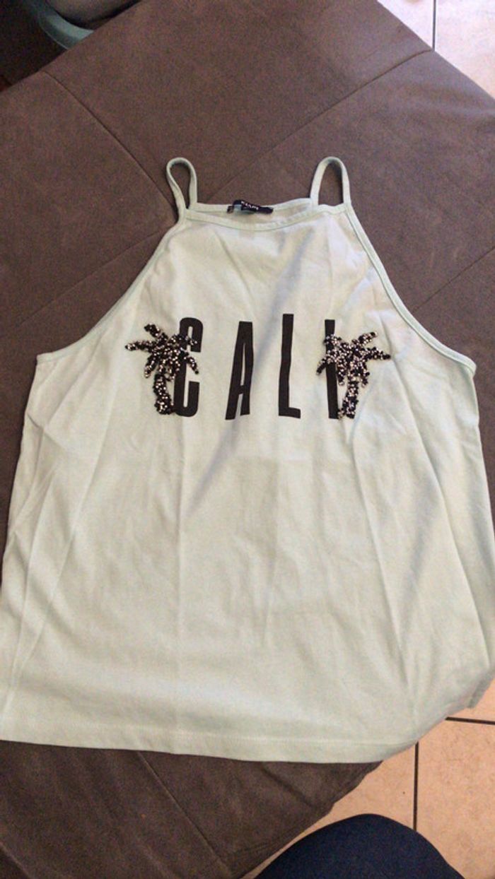 1 débardeur bleu turquoise clair « Cali » avec des palmiers en strass à petites bretelles Marque Kiabi