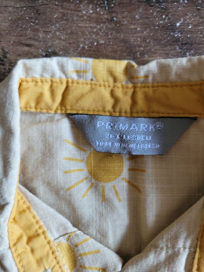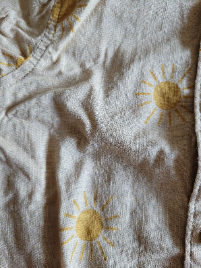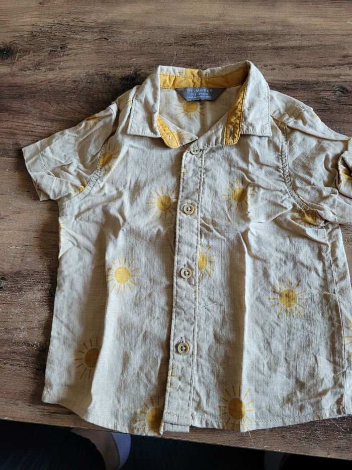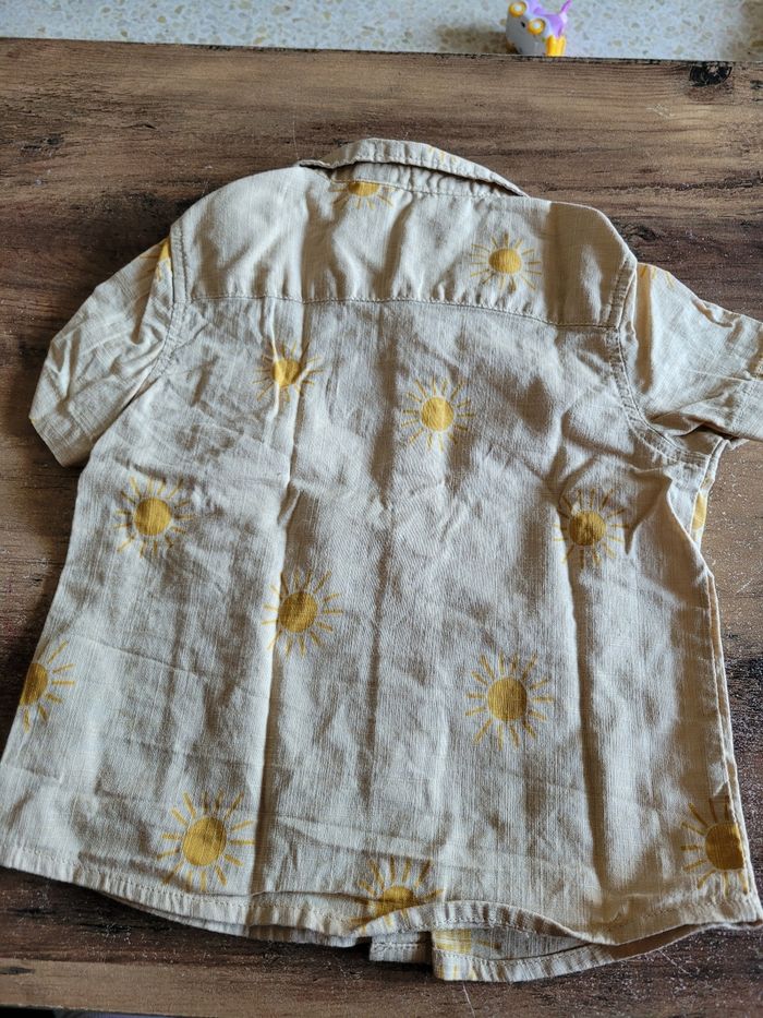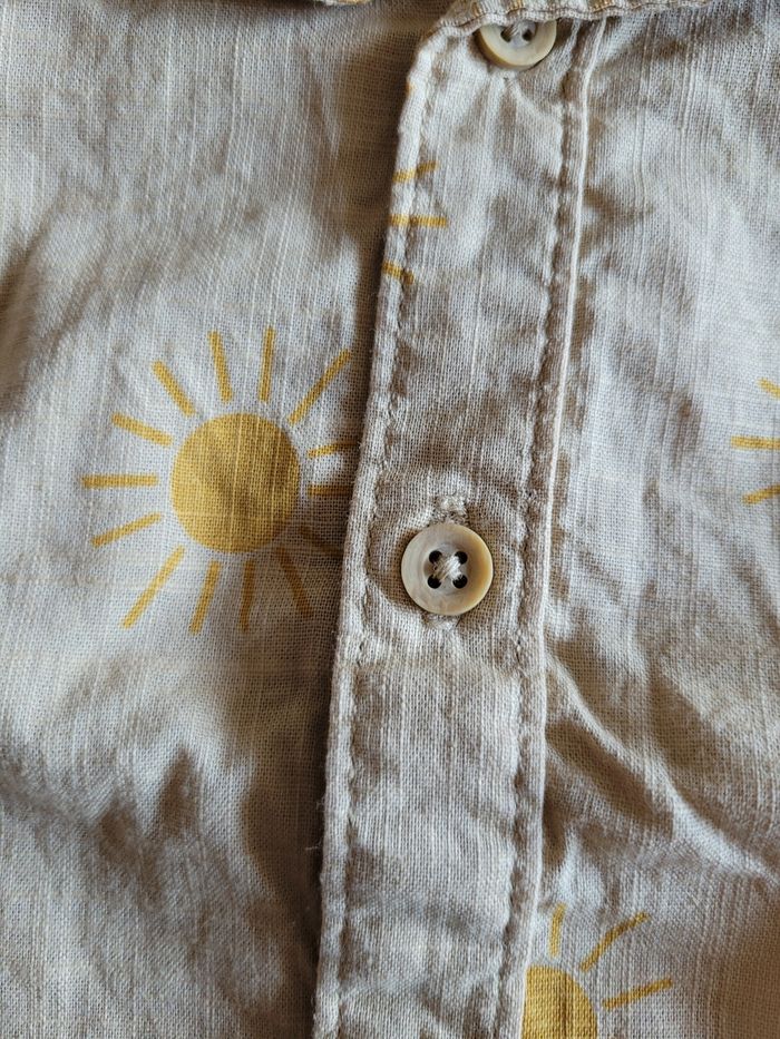 Petit chemise Manche court Couleur marron clair Dessin soleil Taille 9/12 mois Mi saison Bouton devant Matière 100% coton