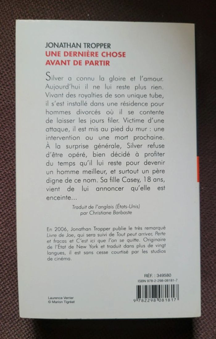 Pour retrouver les livres de mon dressing : #barbara0122_livres Vends livre "Une dernière chose avant de partir" de Jonathan Tropper. Livre neuf, jamais lu.
