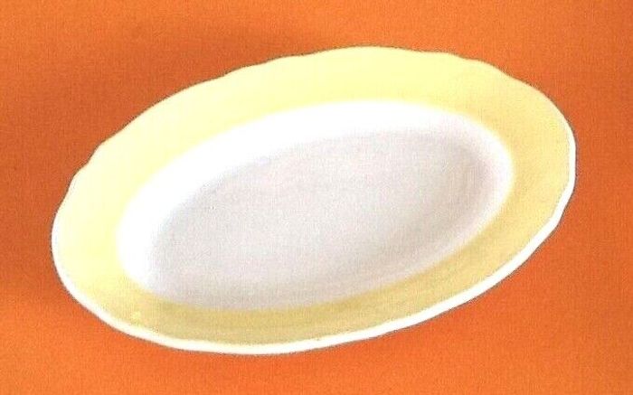 Années 1950  Ravier de service en Faïence Jaune / Blanche
