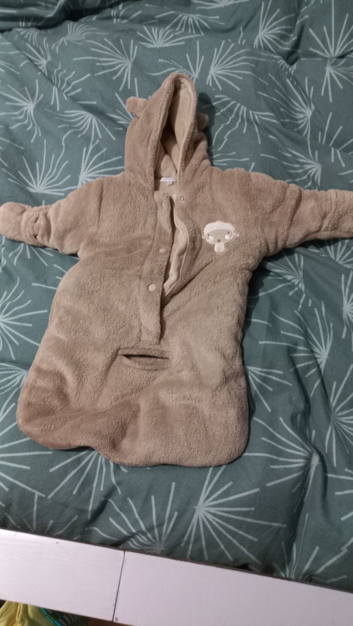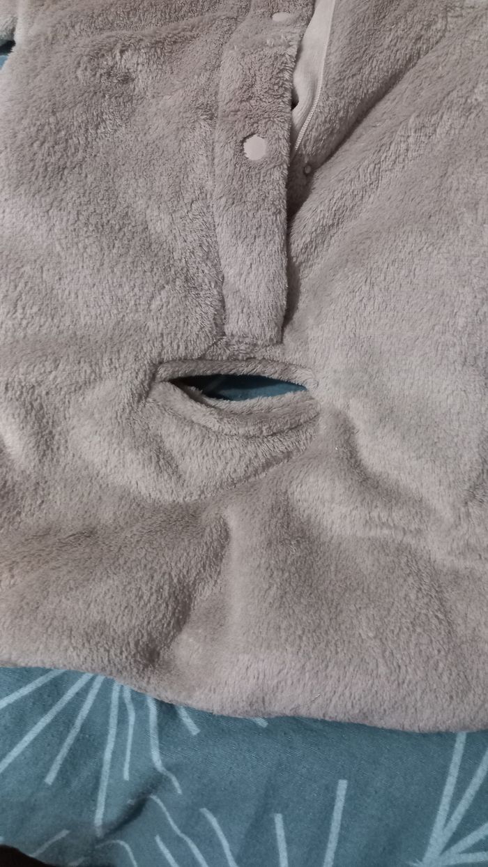 Très douce combinaison et pratique car il y a une ancoche pour passer la ceinture du siège auto
