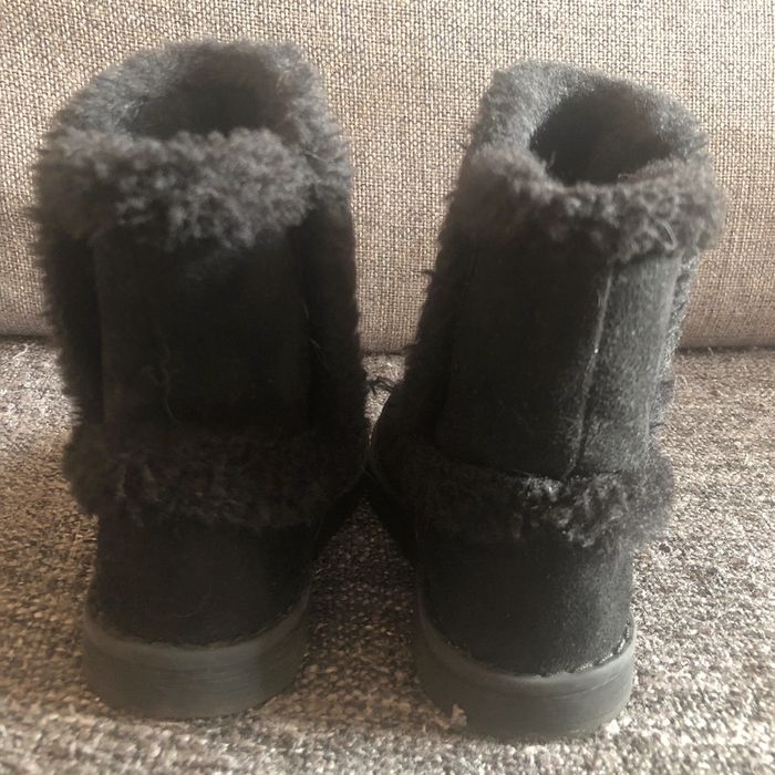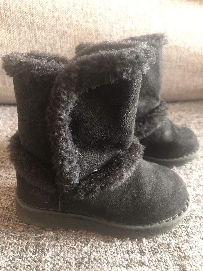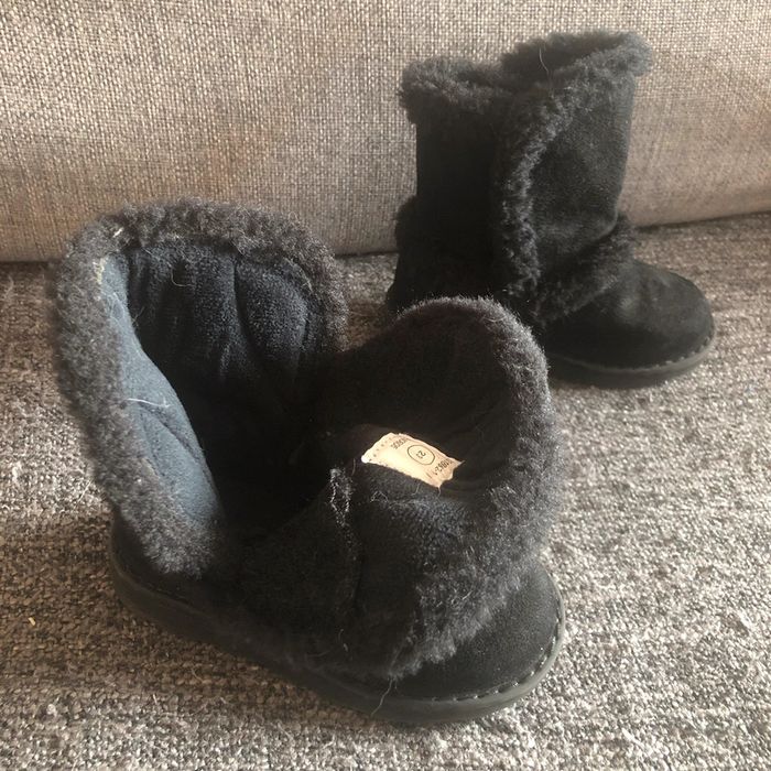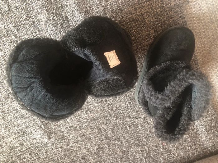 Chaussures boots - marque Noël Paris - taille 23 Aspect suédé - couleur noir Doublure douce et chaude textile, aspect fourrure. Complète ouverture pour un enfilage facile. Fermeture scratches. Semelle extérieure légère, durable et antidérapante. Renforcées à l’arrière pour un très bon maintien des chevilles. Excellente qualité !