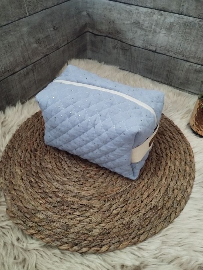 Trousse de toilette: Dimensions idéales pour mettre les couches et le nécessaire de toilette de bébé Vous pouvez aussi l'utiliser en trousse à maquillage ou trousse de voyage. L'extérieur est en double gaze de coton molletonné, l'intérieur est en coton enduit imperméable. Dimensions L19xH12xP10 Différents coloris possibles Possible également de floquer un prénom sur la trousse (+2€)