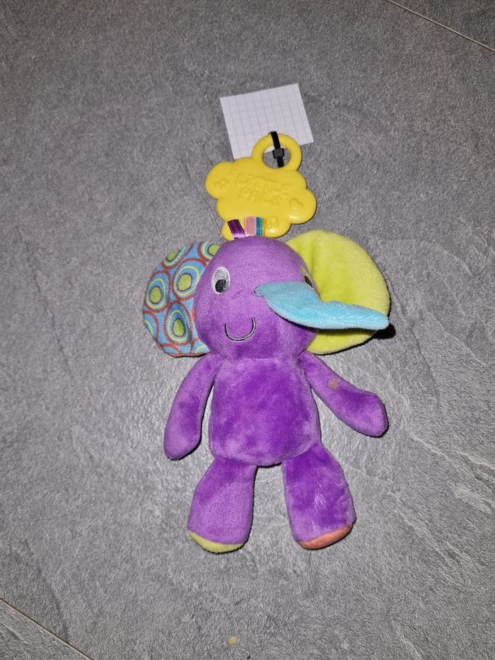 Éléphant d'éveil les oreilles font un bruit de papier froissé et quand on le remu bruit de grelot