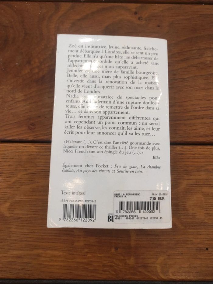 Roman Thriller Dans la peau De Nicci French Très bon état