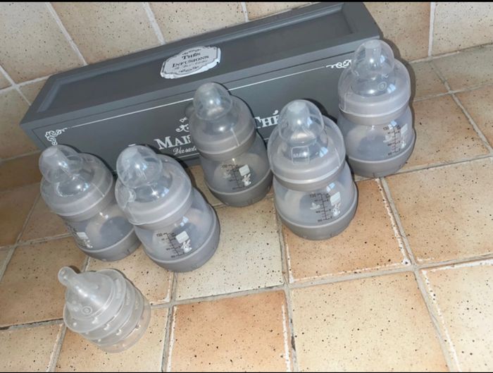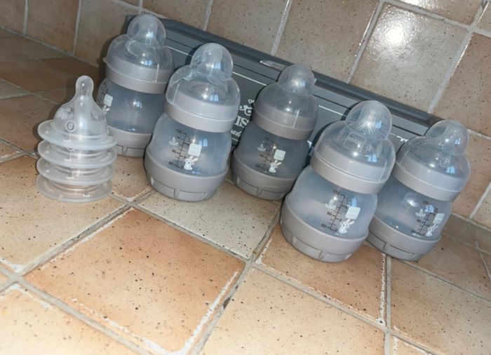 🌺 Lots de 5 biberons mal (taille 1) 🌺 4 tétines débit 0 🌺 Servie 3 semaines