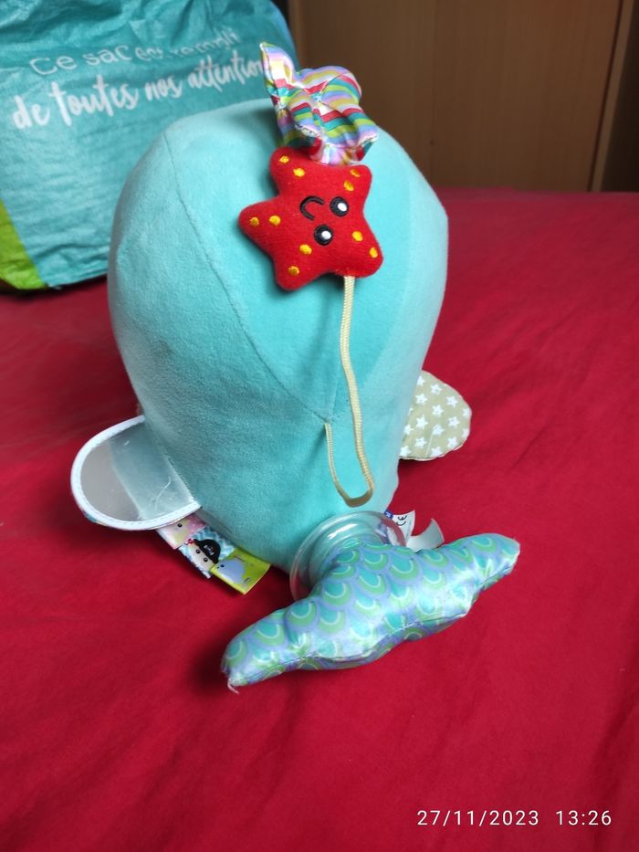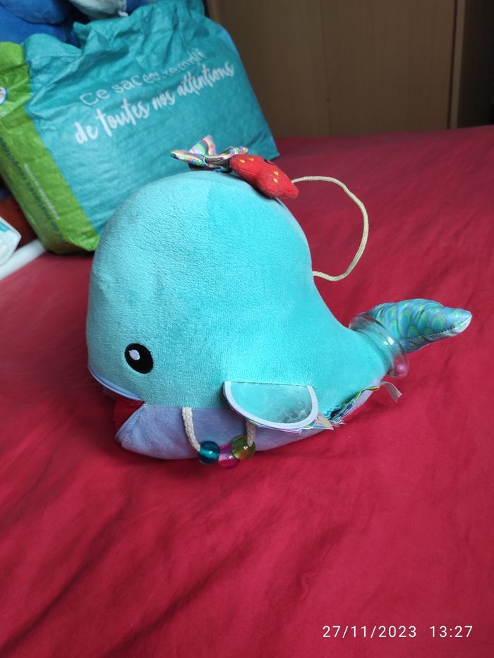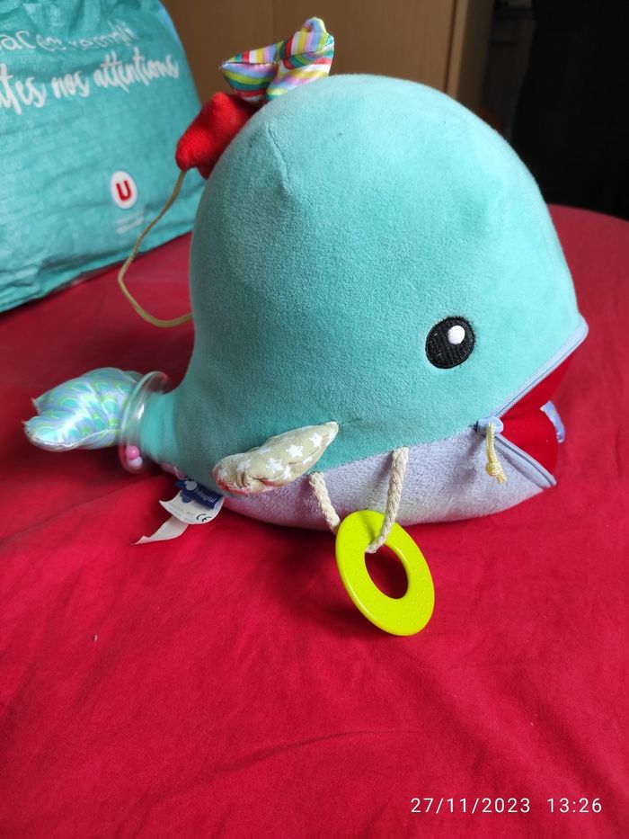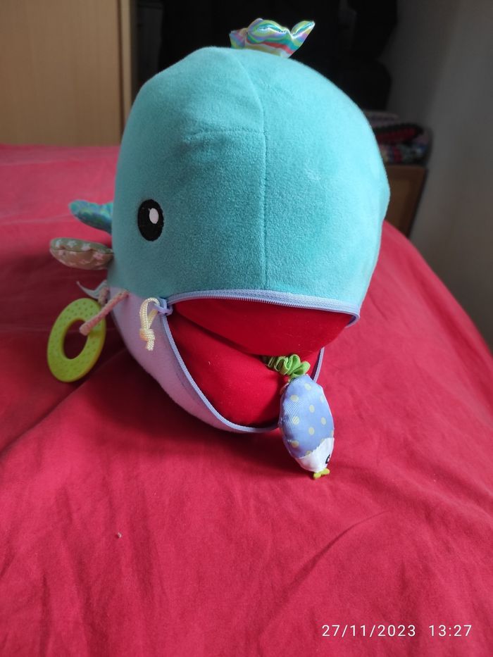 Baleine multi activités... Poisson dans la bouche vibrant Scratch sur le dos Anneau de dentition Miroir Bruits tissus Très bon état N'hésitez pas à demander plus de photos