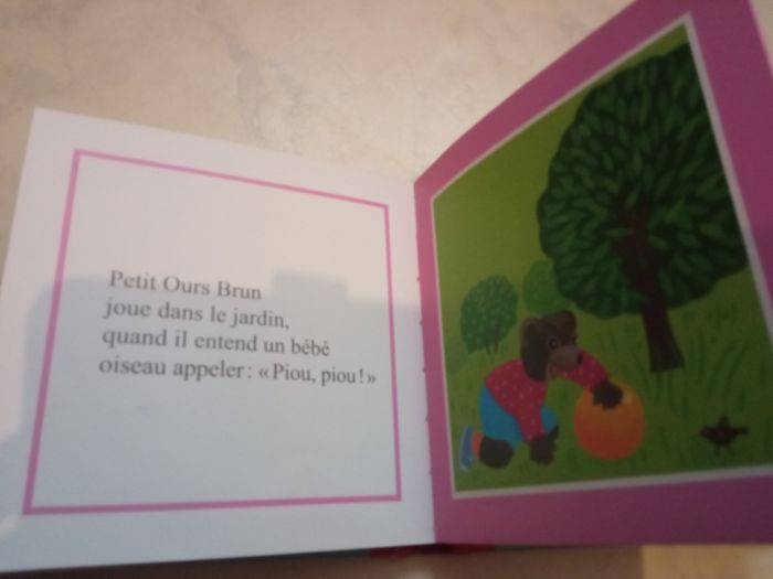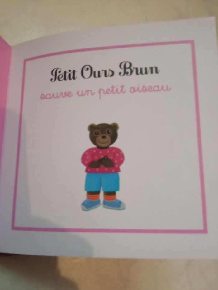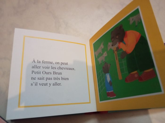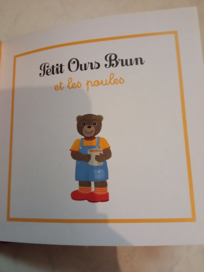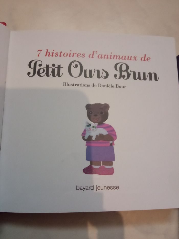 Vends un livre Petit ours brun à 5 euros comprenant 7 histoires Abîmé sur le coin mais scotché n altère en rien la lecture Petit ours brun va voir les lapins Petit ours brun et son chat Minou Petit ours brun et l agneau Petit ours brun et les poules Petit ours brun sauve un oiseau Petit ours brun fait du poney Petit ours brun et le chevreau