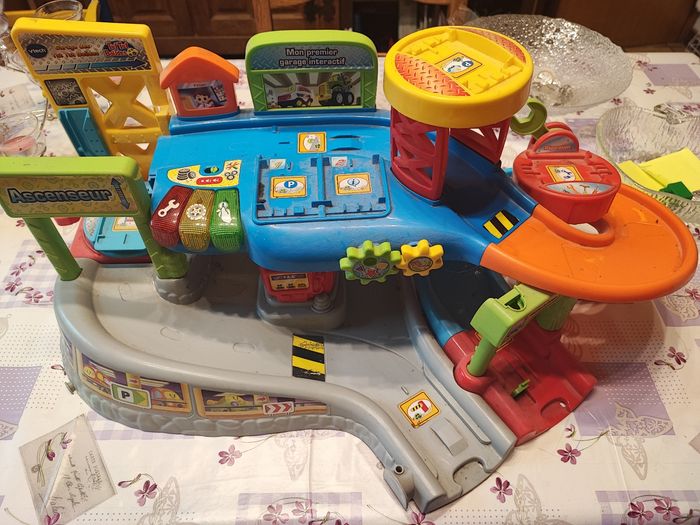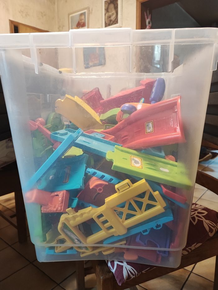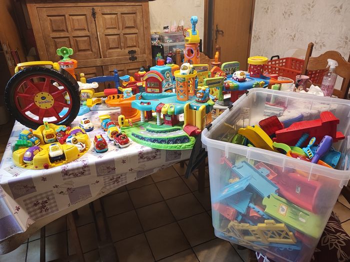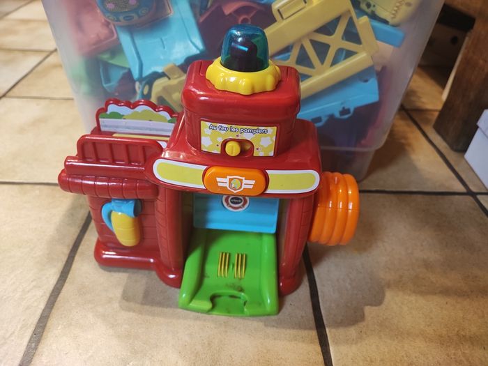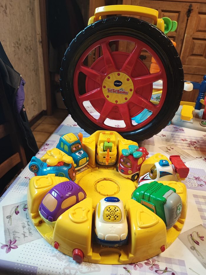 Tut tut bolide. Police , pompiers, aéroport, travaux, 2 garages, roue de rangement, gros bac de circuit pour construire a volonté. Une vingtaine de voiture qui parle. Impossible de prendre tout en photos. Valeur 450 euros.