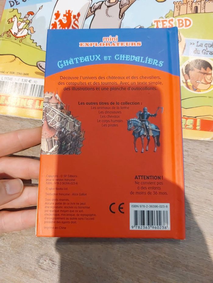 #jessicadebreulivreenfant Livres thème chateaux et chevaliers Le petit avec des stickers Le magazine c'est ecrit poster geant dedans mais ce sont des petits