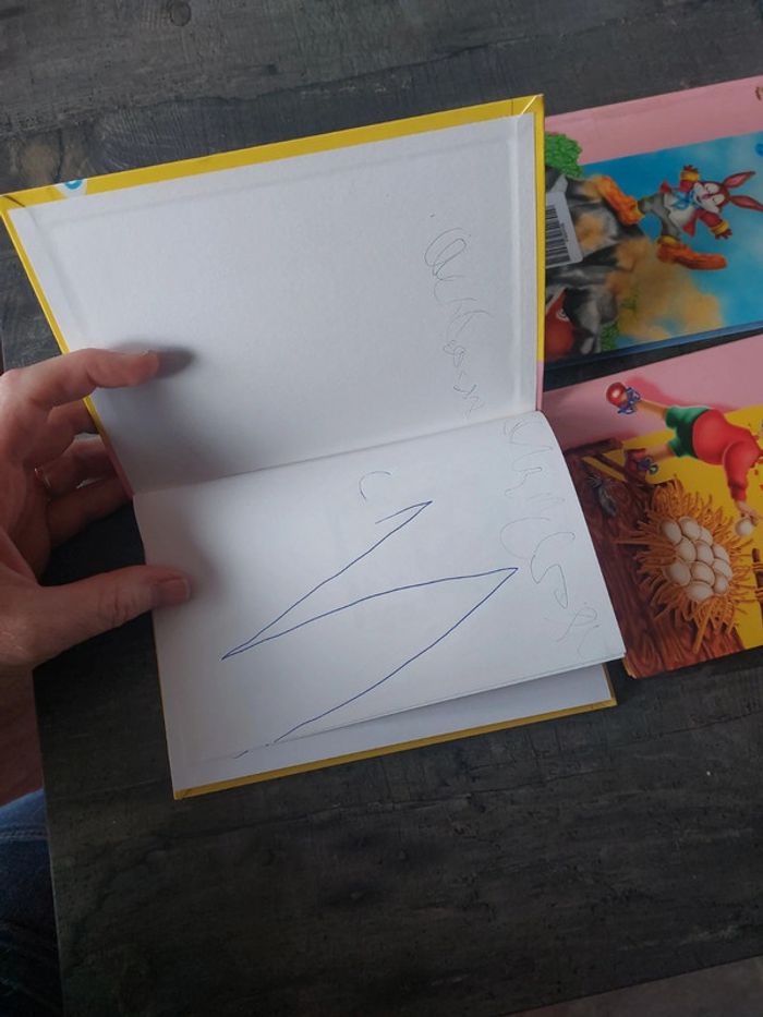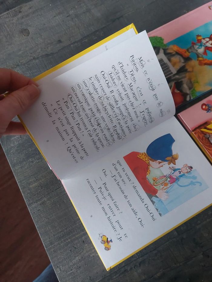 #jessicadebreulivreenfant 3 oui oui ( et le kangourou, et la gomme magique, à la ferme) et un les bons trucs de jojo lapin des écritures voir photos