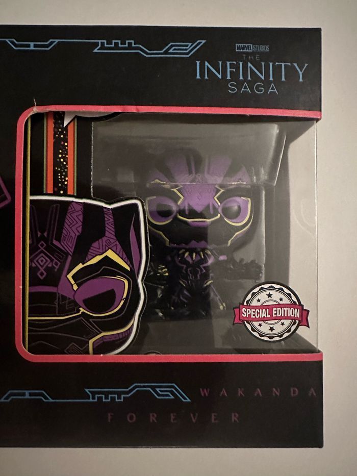 Vends Funko Pop & T-Shirt Black Panther Taille S neuf. Légère déchirure sur le carton visible photo 1 Envoi rapide et soigné.