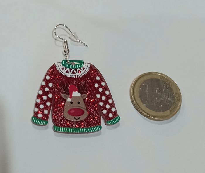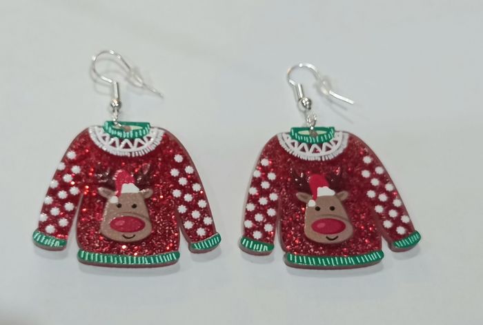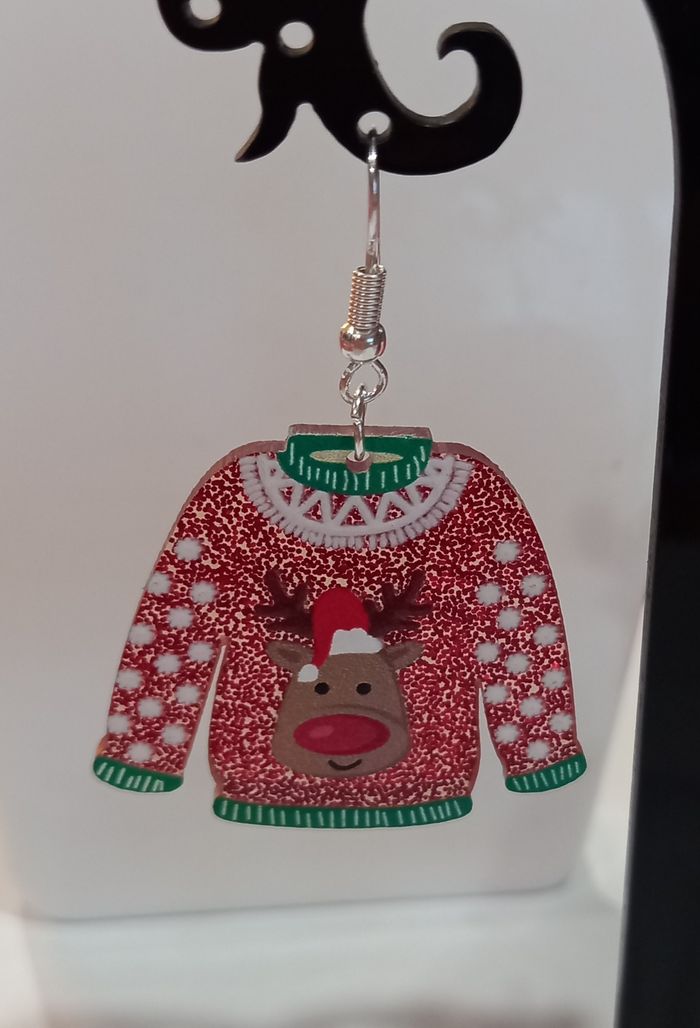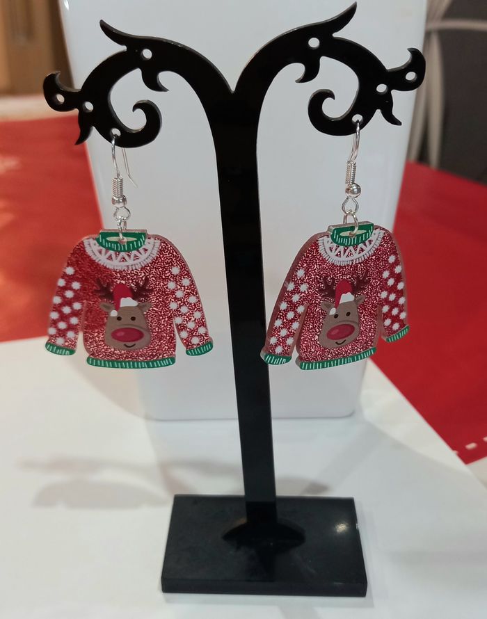 1 jolie paire de boucles d'oreilles forme pull de noel.