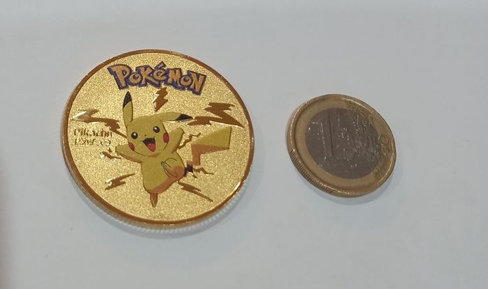Piece dorée Neuve Pokémon Pikachu Carte collection au recto : PIKACHU au verso : POKEMONS Coloris doré , diametre 4 cms. Produit neuf livré dans son boitier plastique ( voir photo 1) Tres belle idée cadeau pour les fans . Envoi rapide et soigné avec numero de suivi .