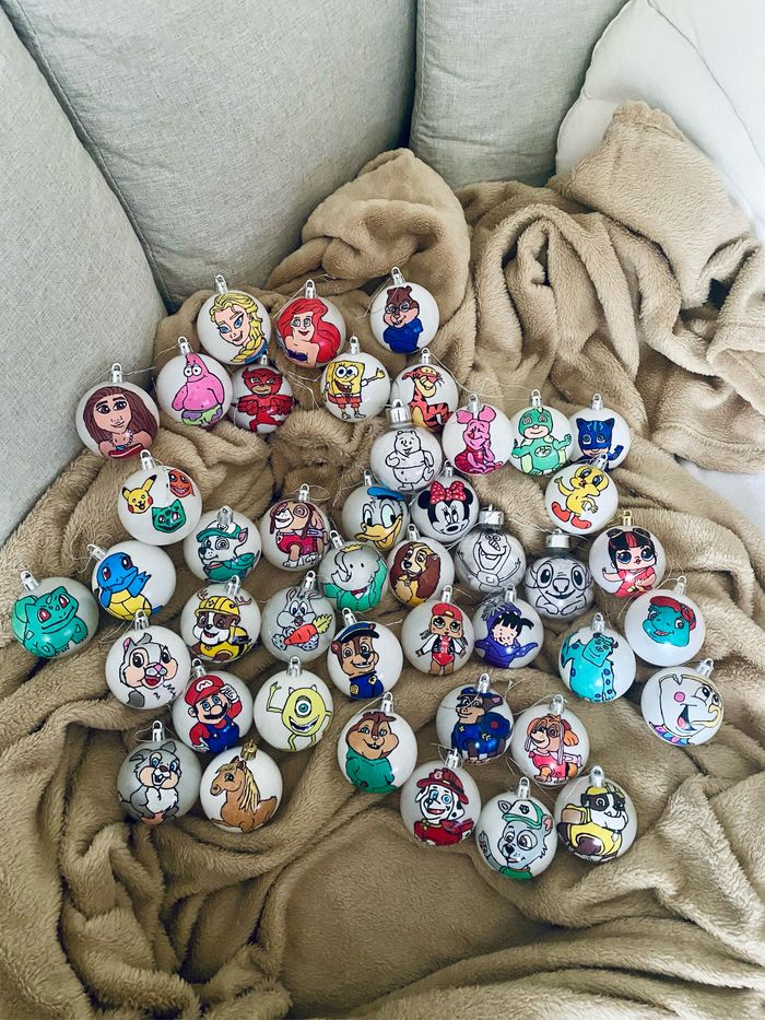 Peut mettre prenom ou premier noël , 3€ la boule . Thème Disney. #boule